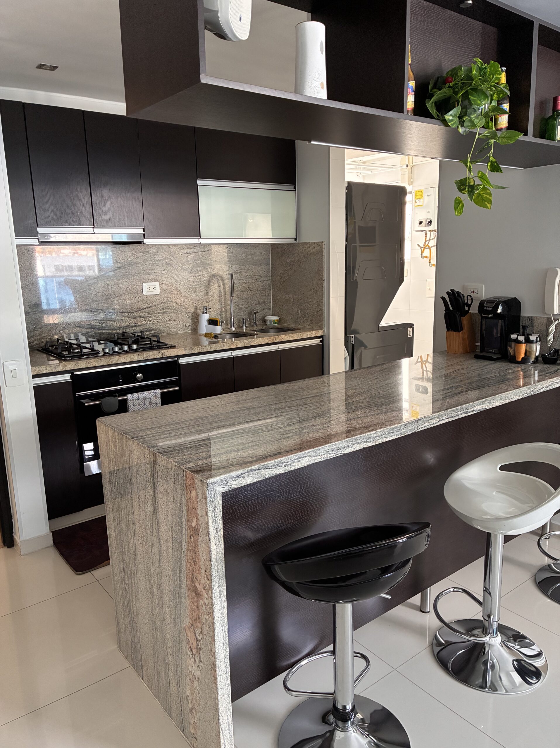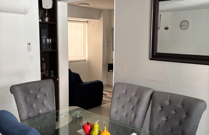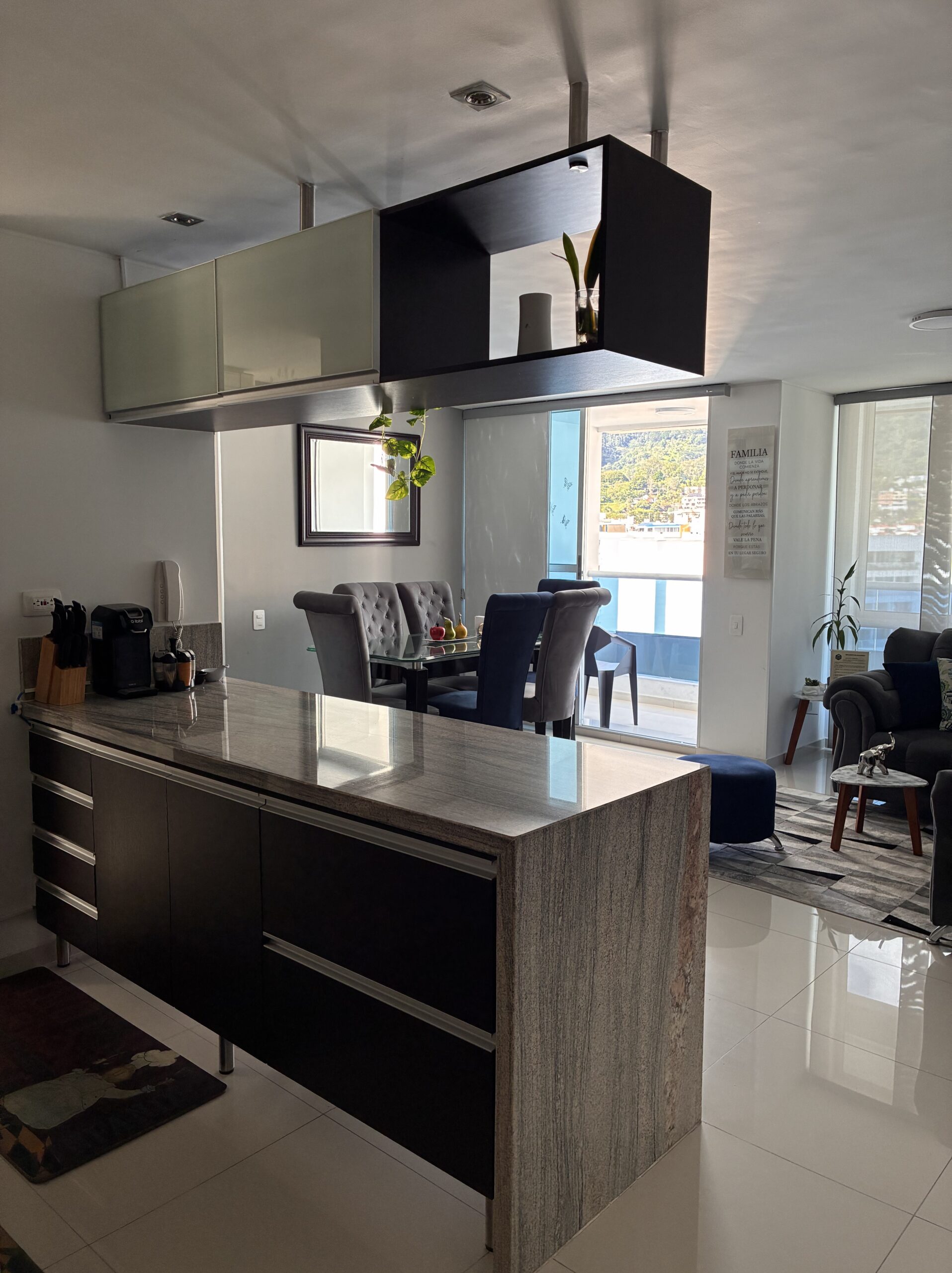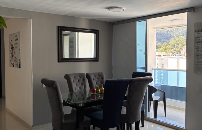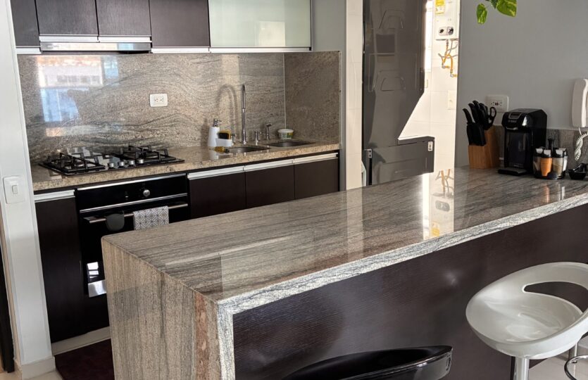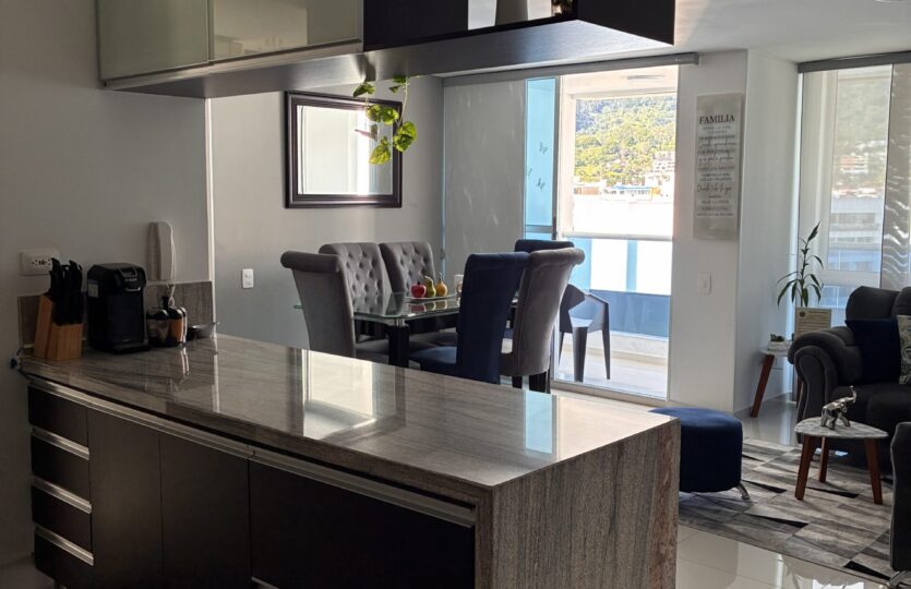 3 habitaciones, 2 baños, estudio, balcón, sala comedor, cocina integral abierta, zona de ropas y doble parqueadero.
